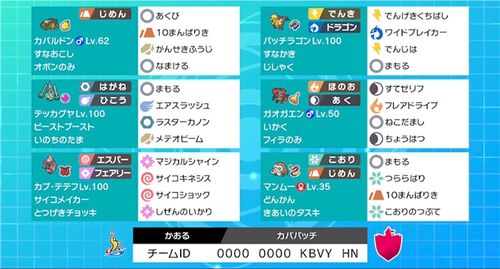 こんにちは。今回は1か月間ほど使い続けていた「カバルドン+すなかきパッチラゴン」を基本先発として採用した構築を紹介したいと思います。 成績 構築の流れ 軸 先発の選択 4匹目 5匹目 6匹目 個別解説 カバルドン パッチラゴン テッカグヤ ガオガエン …